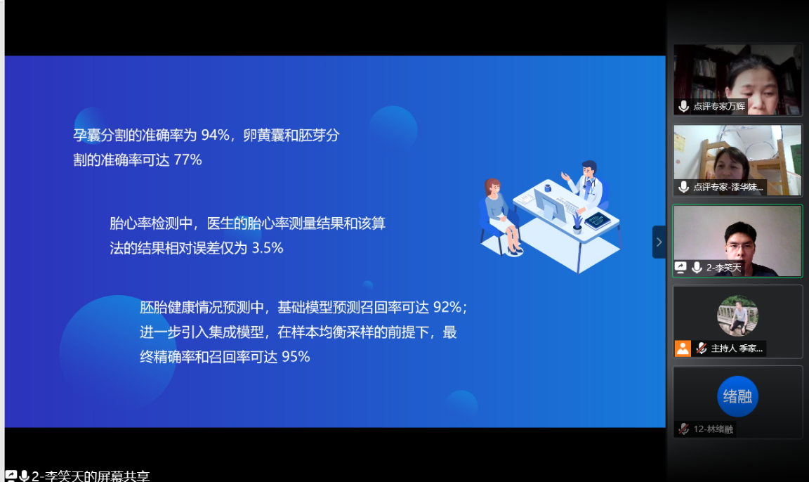 在第三会场中,司兴昊同学负责的项目脱颖而出,深受老师好评。项目制作了针对孕早期B超影像的智能辅助诊断系统,紧抓缺少超声科专业医师的社会痛点,把所学用于实践,结合新兴技术,为日常就医提供便利。