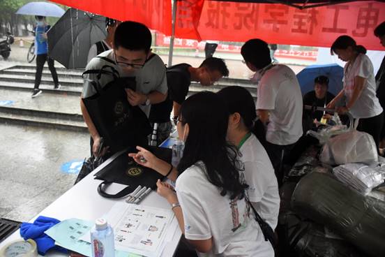 党委副书记黄亚和辅导员们也都早早来到现场,一边协调各个迎新点的人员与物资的分配,一边为新生和家长答疑解惑。当自动化与电气类2017班的傅文沛冒着风雨步入校园时,发现迎面而来的便是成人小说的书记与辅导员,他眼前顿时一亮:“我都没想到下这么大的雨辅导员都还站在帐篷外等着我们,真的特别开心。”